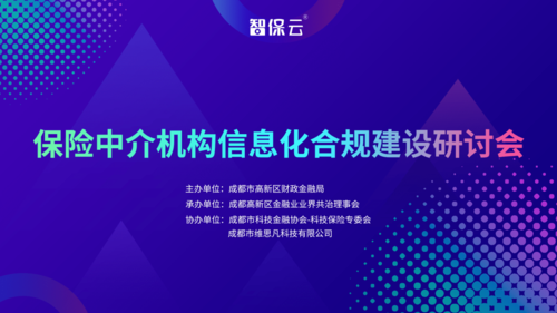 2021年6月17日下午,由成都高新区财政金融局主办,成都高新区金融业业界共治理事会承办,成都市科技金融协会-科技保险专委会、成都市维思凡科技有限公司(智保云)协办的“保险中介机构信息化合规建设研讨会”顺利举办。