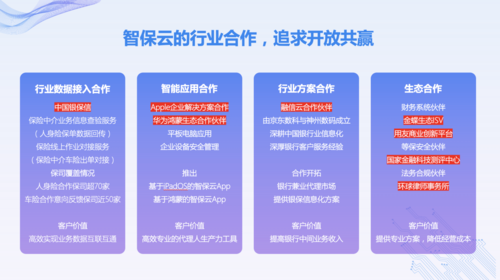 在已经与中国银保信、国家金融科技测评中心、金蝶、用友、环球律师事务所等多家机构达成合作的基础上,智保云进一步成为华为鸿蒙生态合作伙伴,与Apple中国达成企业解决方案合作,并与融信云携手开拓银行兼业市场。